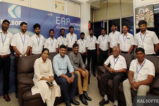 We are delighted to share that Mr Thirunavukarasu, Manager -IT, Sharadha Terry Products Pvt Ltd, (the gentleman in white shirt, standing right to our CEO) today visited our office on 04th July, 2025, to thank in person on the successful implementation of Kalsofte ERP in SKS Mills.
